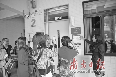 在顺德区社会组织党建现场会上,与会人员参观广东顺德德胜学校党员示范课堂。欧阳少伟 摄